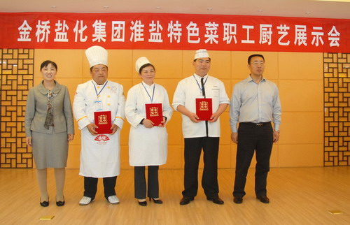 5月19日上午,金桥盐化集团淮盐特色菜职工厨艺展示会在淮盐大酒店隆重举办。公司党委副书记、纪委书记、工会主席卢明生致欢迎词,集团公司工会副主席李岚芹宣布比赛开始。来自集团公司各基层单位的13名技艺精湛的厨师做出了26道特色佳肴,经过评委会认真品评,台南盐场王树伟、青口盐场卢燕获一等奖,其他选手分获二、三等奖。(司宣)